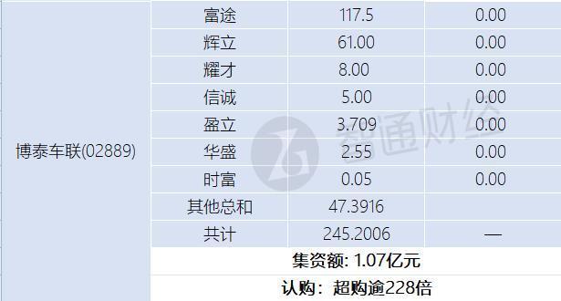 智通财经APP获悉财富配资,紫金黄金国际(02259)、西普尼(02583)、博泰车联(02889)正在招股中。截止9月24日,富途、辉立、耀才等券商合计为紫金黄金国际借出4640.806亿港元,超购逾184倍;合计为西普尼借出588.3228亿港元,超购逾1896倍;合计为博泰车联借出245.2006亿港元,超购逾228倍。